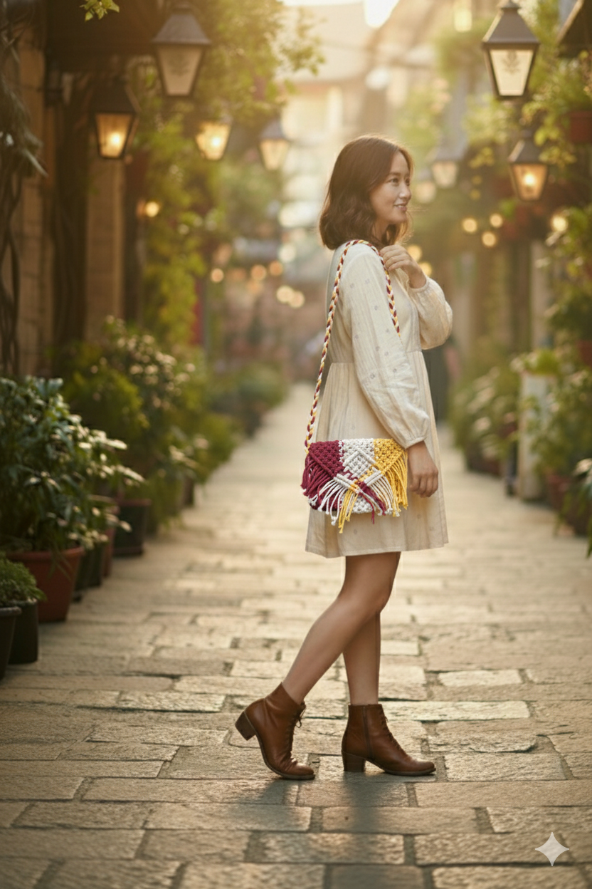 Knot Charm Macrame Sling Bag