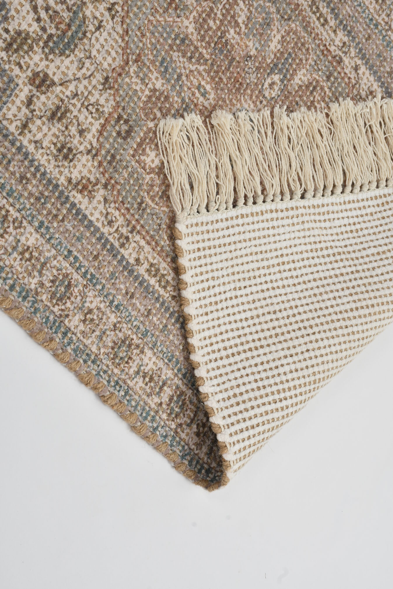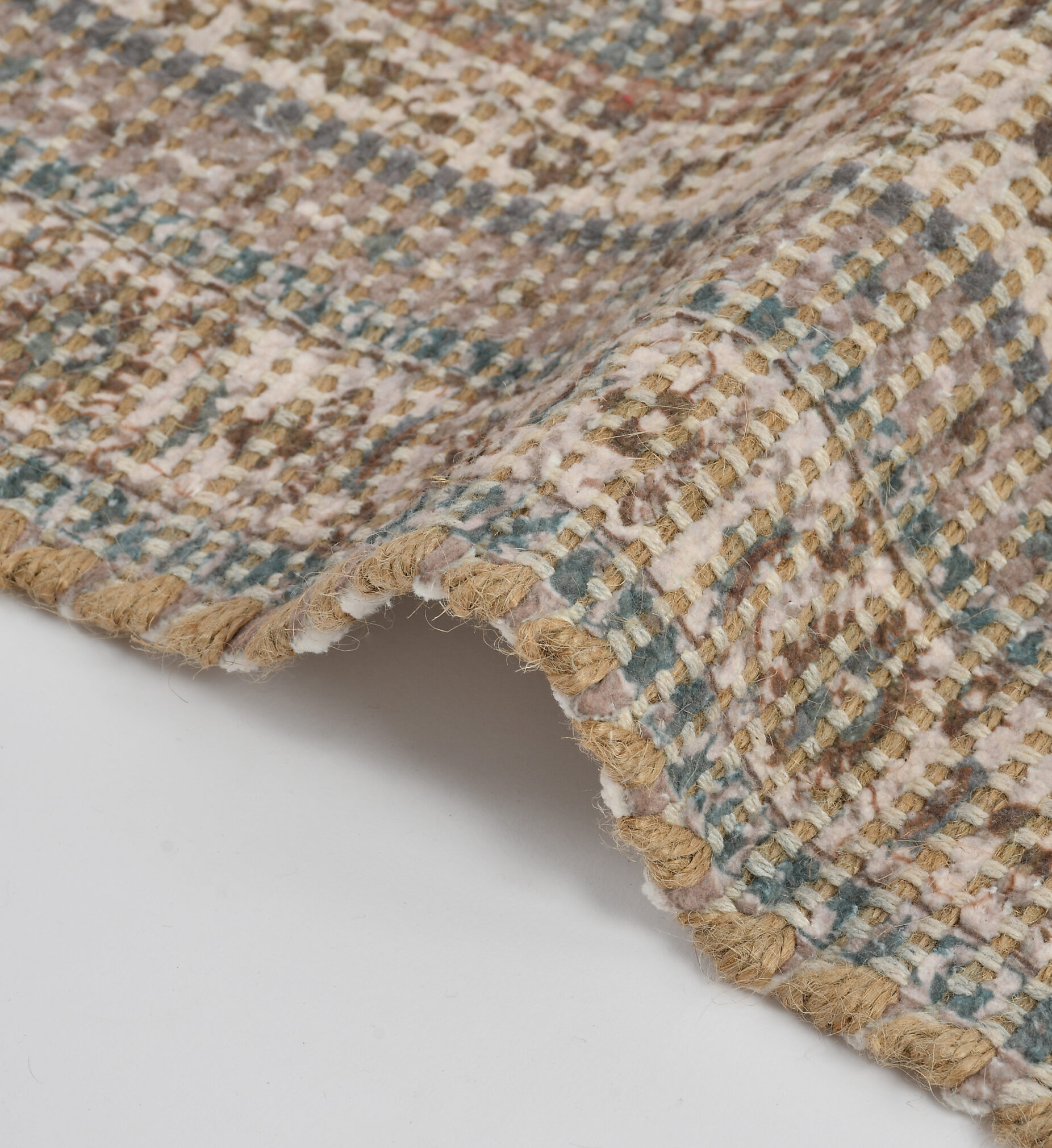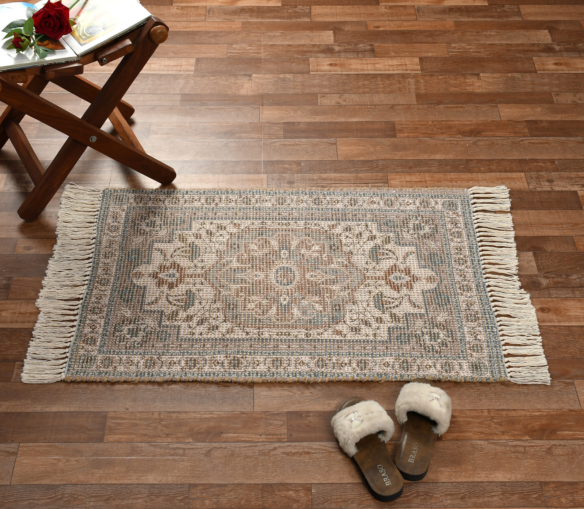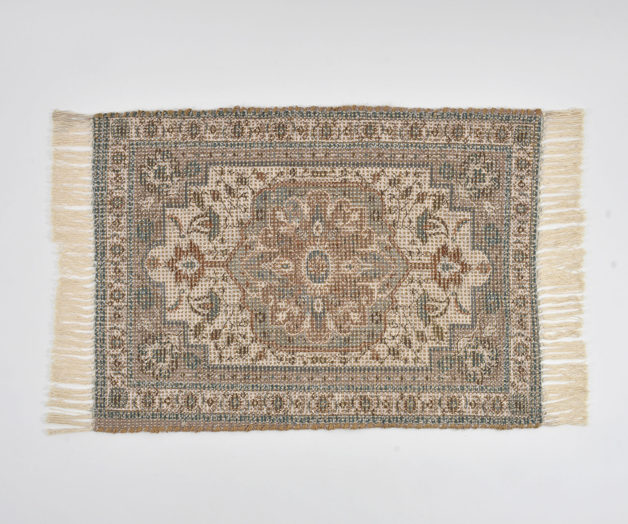 Elevate your home décor with this beautifully handcrafted rug, made from a refined blend of cotton, polyester, and jute that offers the perfect mix of softness, durability, and natural texture. Expertly handwoven and artistically printed, it reflects skilled craftsmanship and timeless style. The compact 60×90 cm size makes it an ideal accent piece for your living room, bedroom, or entryway, adding warmth, charm, and a touch of sophistication to any space.